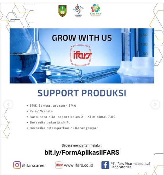 Lowongan Produksi PT. Ifars Pharmaceutical Laboratories