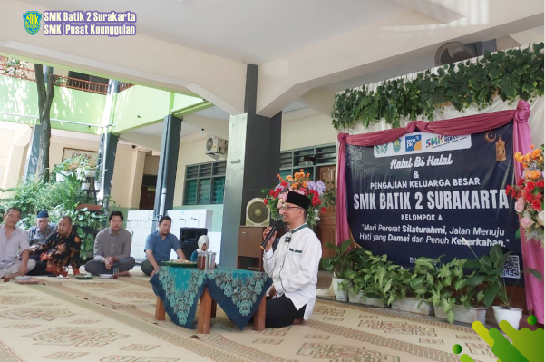 Pelaksanaan Halal Bi Halal dan pengajian keluarga besar SMK Batik 2 Surakarta pada tanggal 19 April 2026 menjadi momentum penting untuk mempererat silaturahmi sekaligus memperkuat nilai-nilai kebersamaan di lingkungan sekolah. Kegiatan ini tidak hanya menjadi ajang saling memaafkan setelah bulan suci Ramadan, tetapi juga sebagai sarana membangun kembali keharmonisan antar guru, karyawan, dan seluruh keluarga besar sekolah. Dalam suasana penuh kehangatan, kegiatan ini mencerminkan esensi kebersamaan, kekeluargaan, serta komitmen untuk terus menumbuhkan budaya saling menghargai dan mendukung dalam dunia pendidikan.